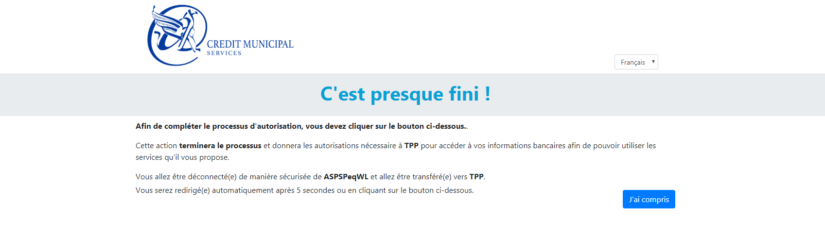 To carry out its strong authentication on the ASPSP side, the PSU will be redirected from the TPP APP through several pages within the workflow described below.