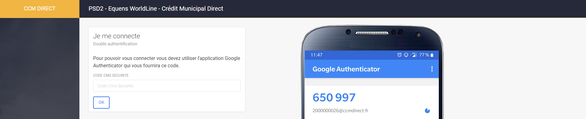 According to the Berlin Group Implementation guidelines, there can be different methods for the PSU to carry out its strong authentication. Credit Municipal is supporting the following one(s):